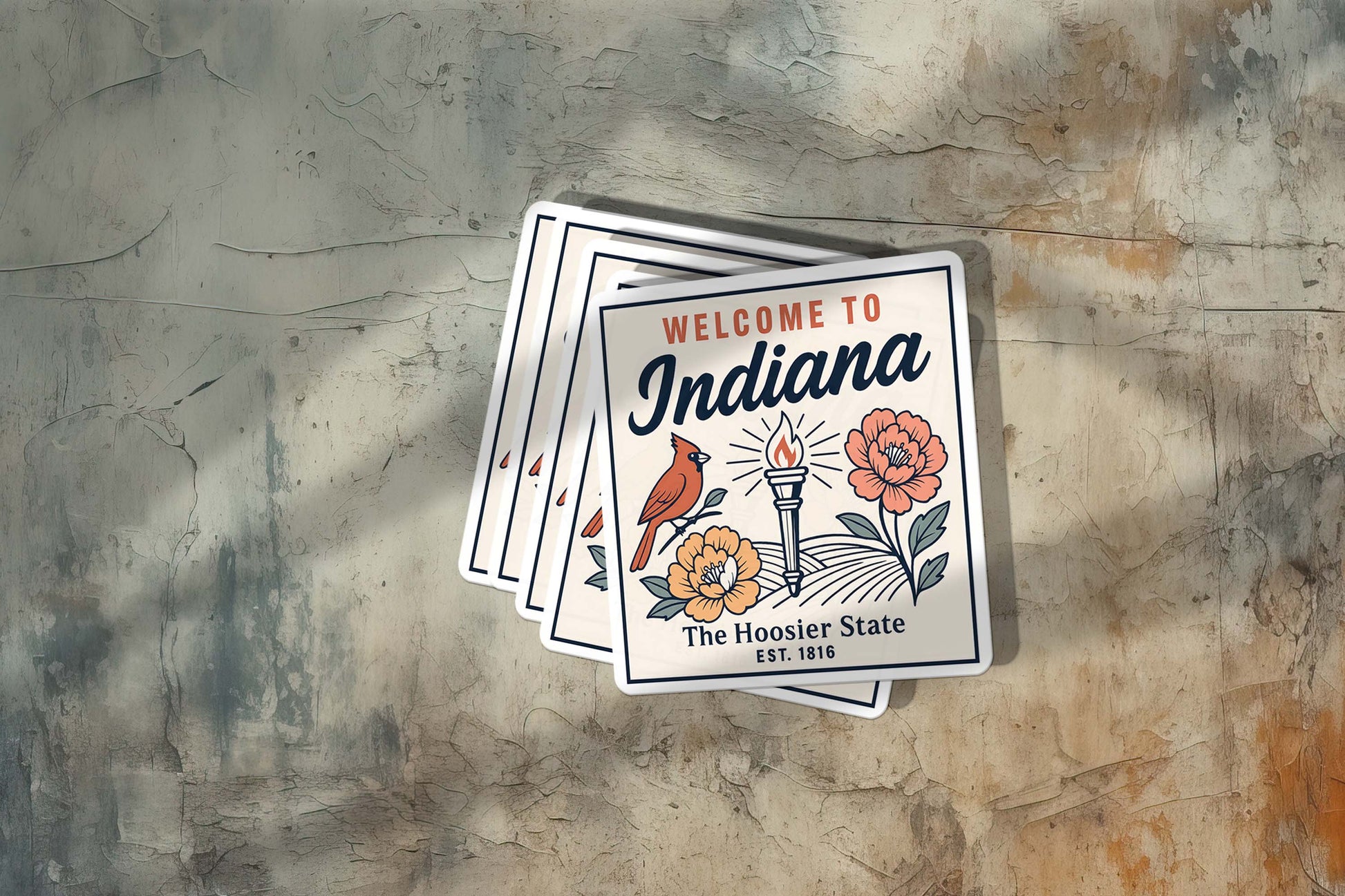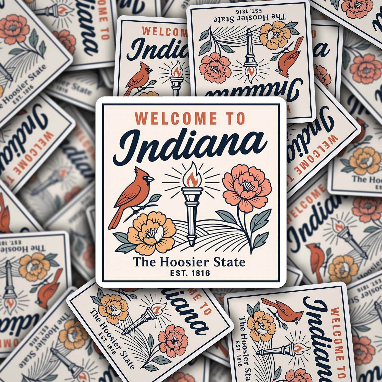 Welcome to Indiana Vinyl Sticker – Vintage State Travel Decal