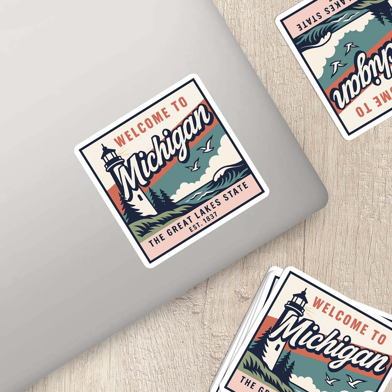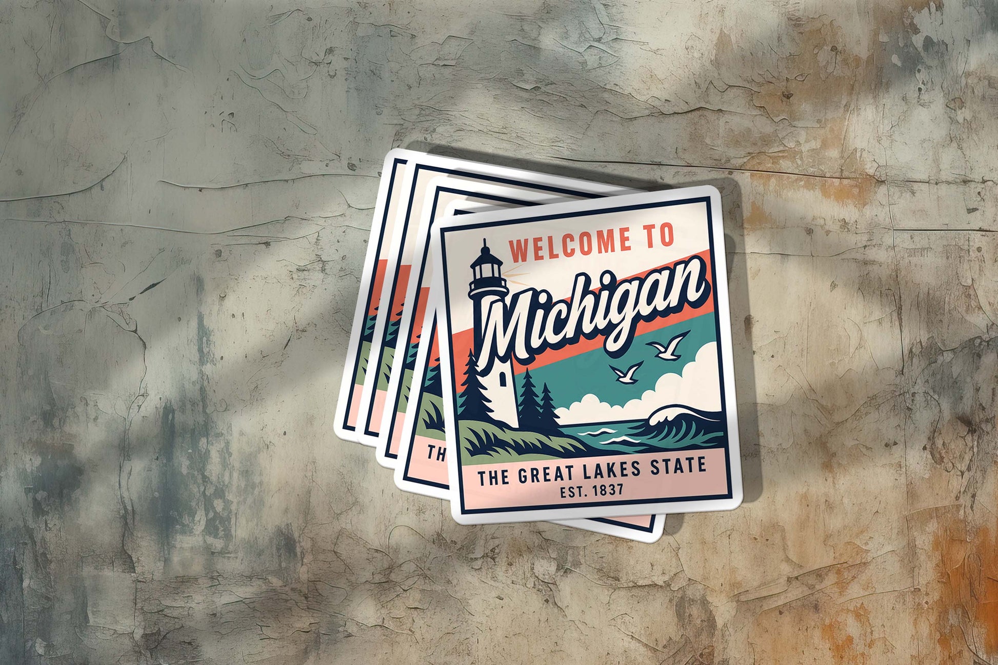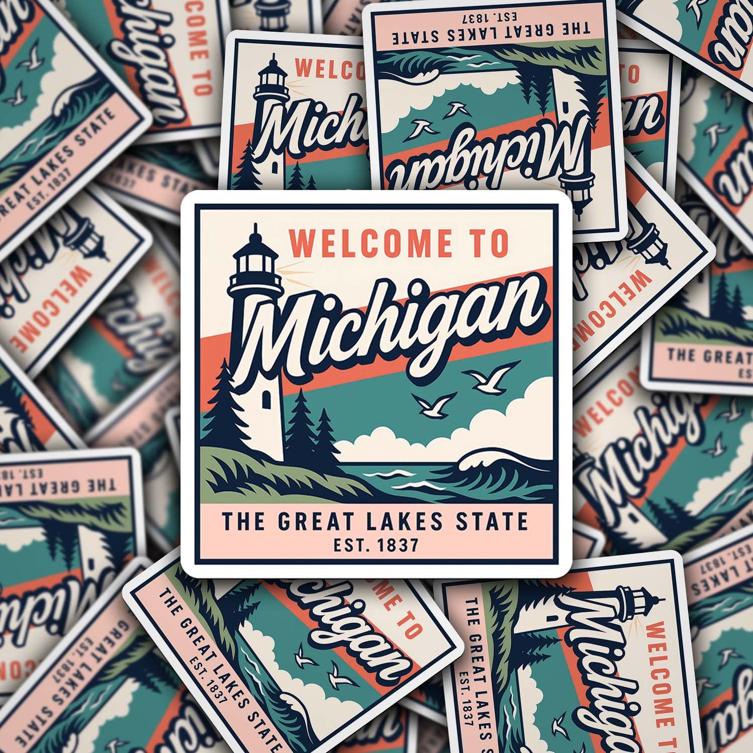 Celebrate The Great Lakes State with this vintage-inspired Welcome to Michigan vinyl sticker! Featuring a classic lighthouse, soaring seagulls, pine trees, and rolling waves, this design captures the natural beauty and coastal charm of Michigan. Perfect for travelers, collectors, or proud Michiganders, this sticker is a timeless reminder of state pride.