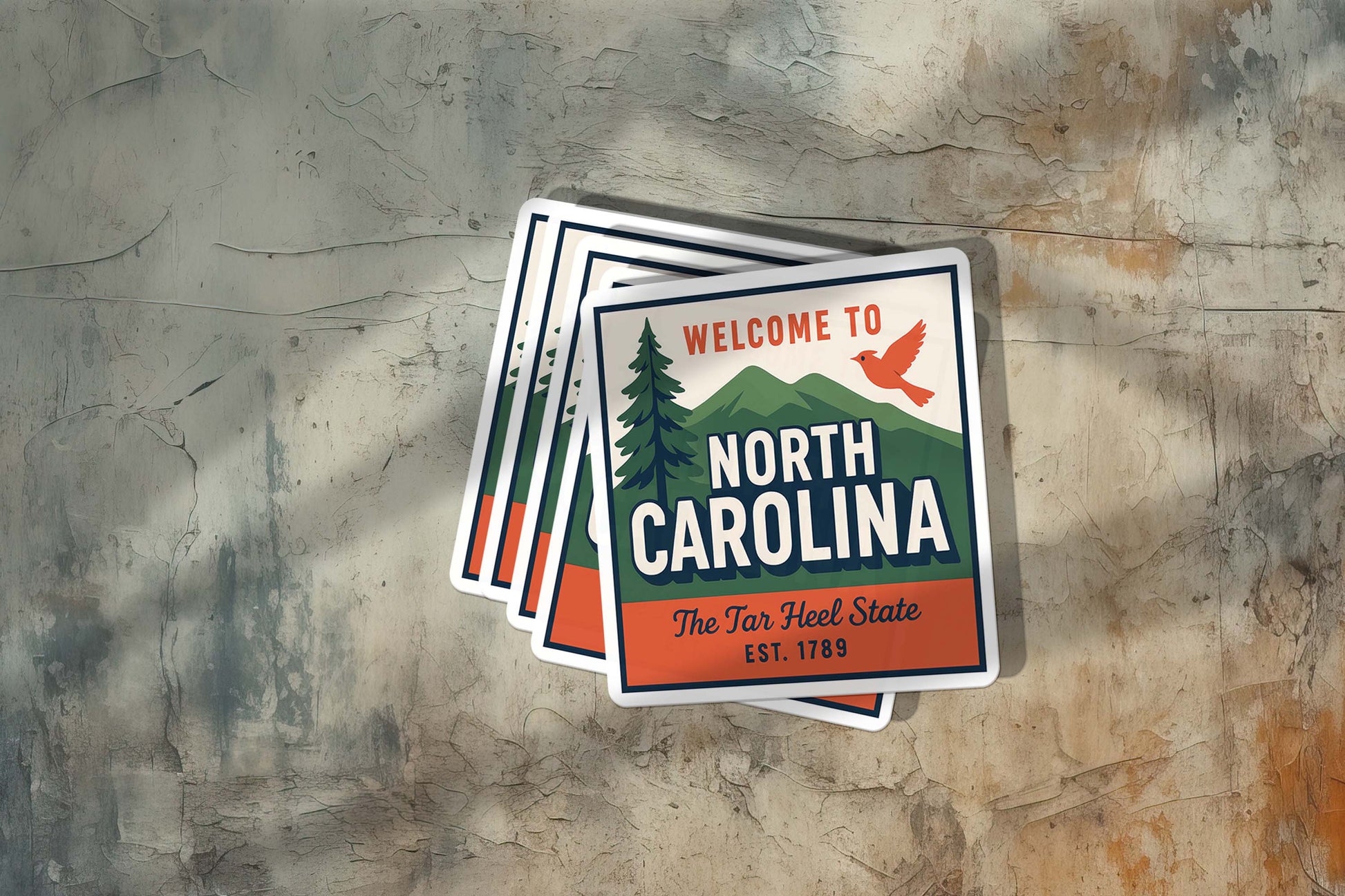 🛒 Add this Welcome to North Carolina Vinyl Sticker to your cart today and show your love for the mountains, coast, and charm of the Tar Heel State! 🌲🐦