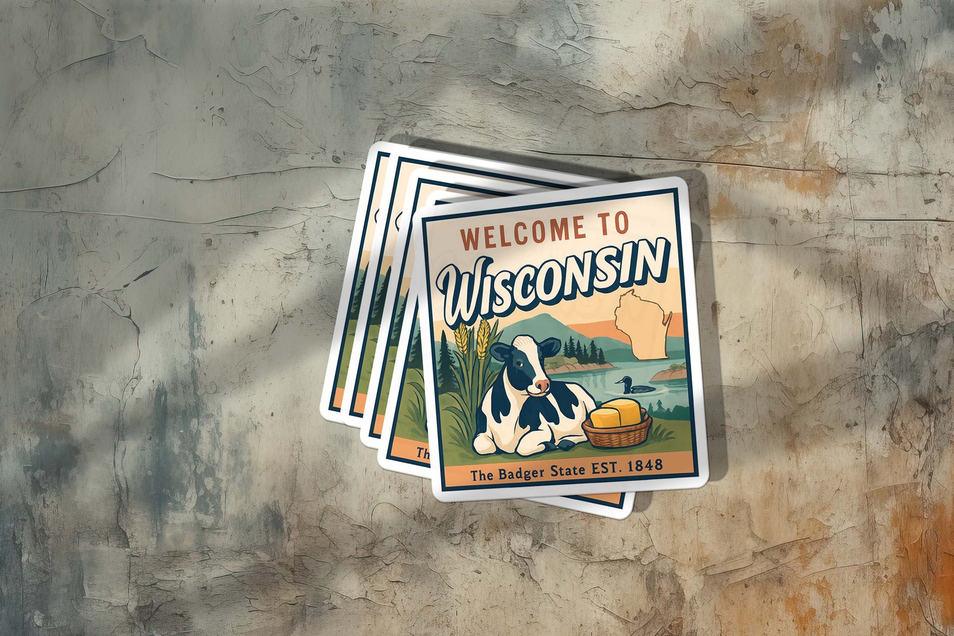 Welcome to Wisconsin Vinyl Sticker – Vintage State Travel Decal